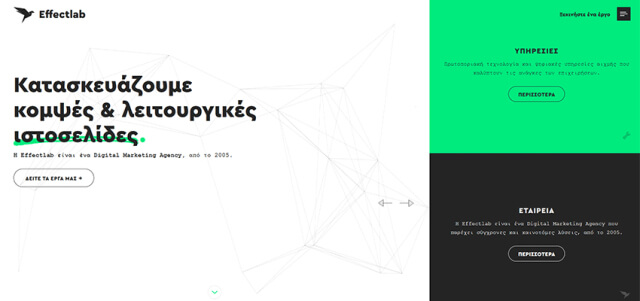 Effect Lab利用了較大的左側裂縫。原因很簡單,左邊是用戶開始從屏幕瀏覽網頁的地方,這是我們自然的閱讀行為習慣。所以,這是一個重要的東西應該放置的地方,比如標志、口號等等。