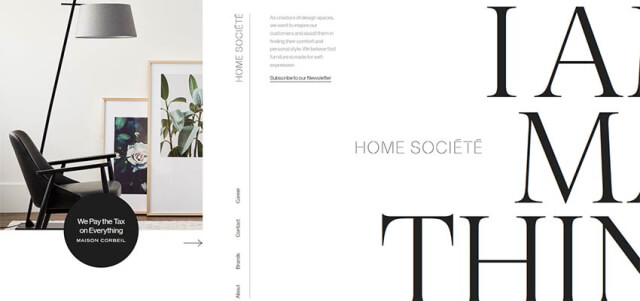 Home Societe用干凈的表面和大量新鮮的空氣與在線觀眾見面。第一個塊包含歡迎圖片和垂直導航,而第二個塊包含所有內容,以?About?部分開始,以?Contacts?結束。這兩個區域之間的過渡是非常無縫的,你輕輕地從一個部分流動到另一個部分。