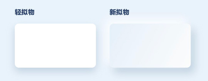 輕擬物從本質上來說是Y軸面原質化層級分離的,而新擬物是在Y軸面不分離的情況下物理化擬態。