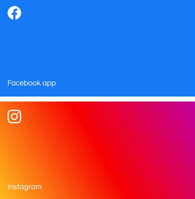 Facebook推出的企業LOGO采用定制字體,以全部大寫的形式在應用產品之間建立視覺區別。以不同的顏色顯示,表現出旗下不同社交品牌的屬性,如藍色代表和公司同名的 Facebook 社交平臺,綠色代表 WhatsApp(跨平臺應用程序,用于智能手機之間的通訊),粉色代表 Instagram 等等。